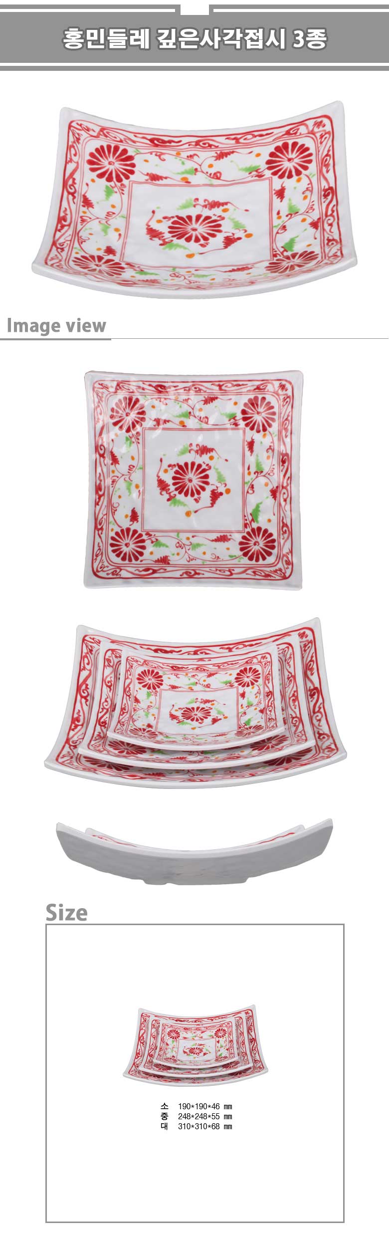 홍민들레 깊은사각접시