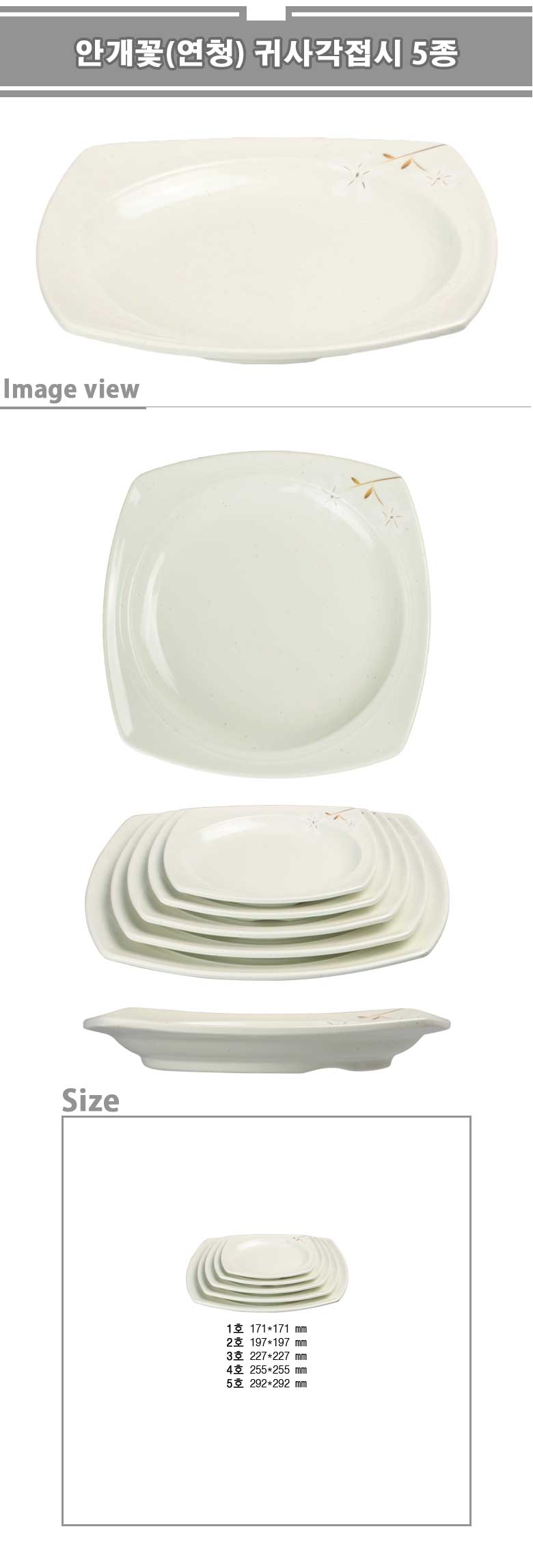 안개꽃(연청) 귀사각접시
