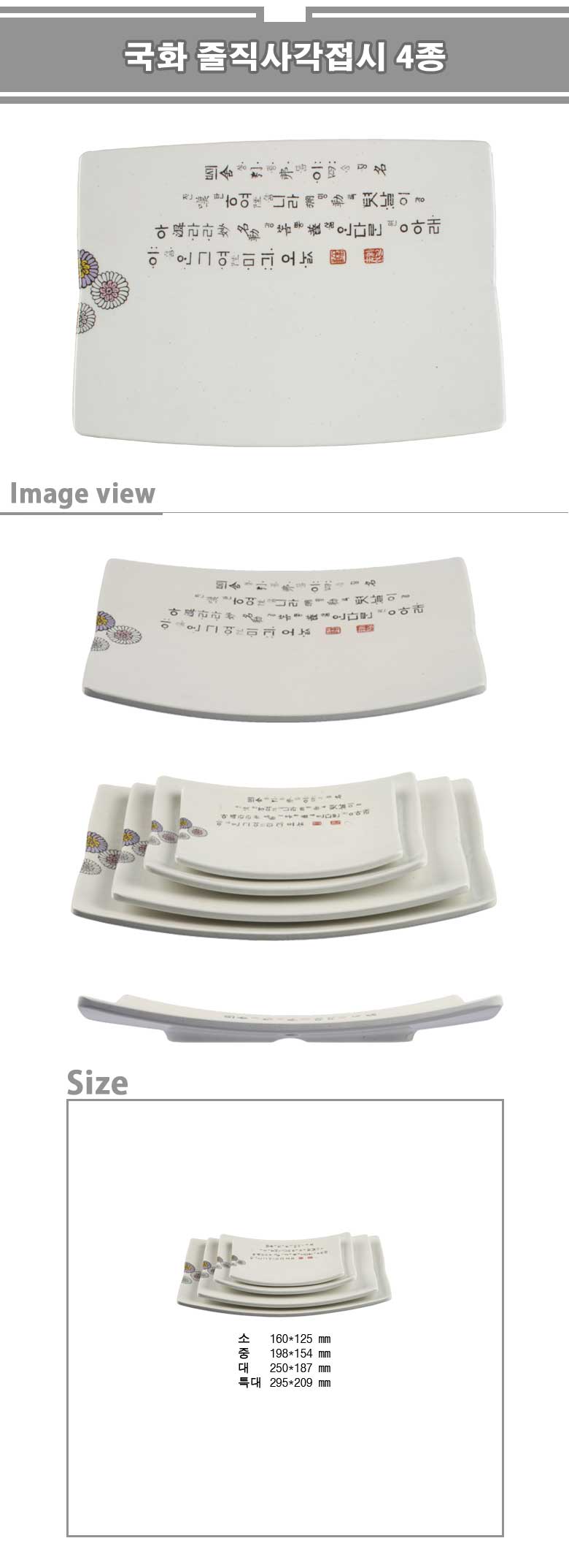 국화 줄직사각접시