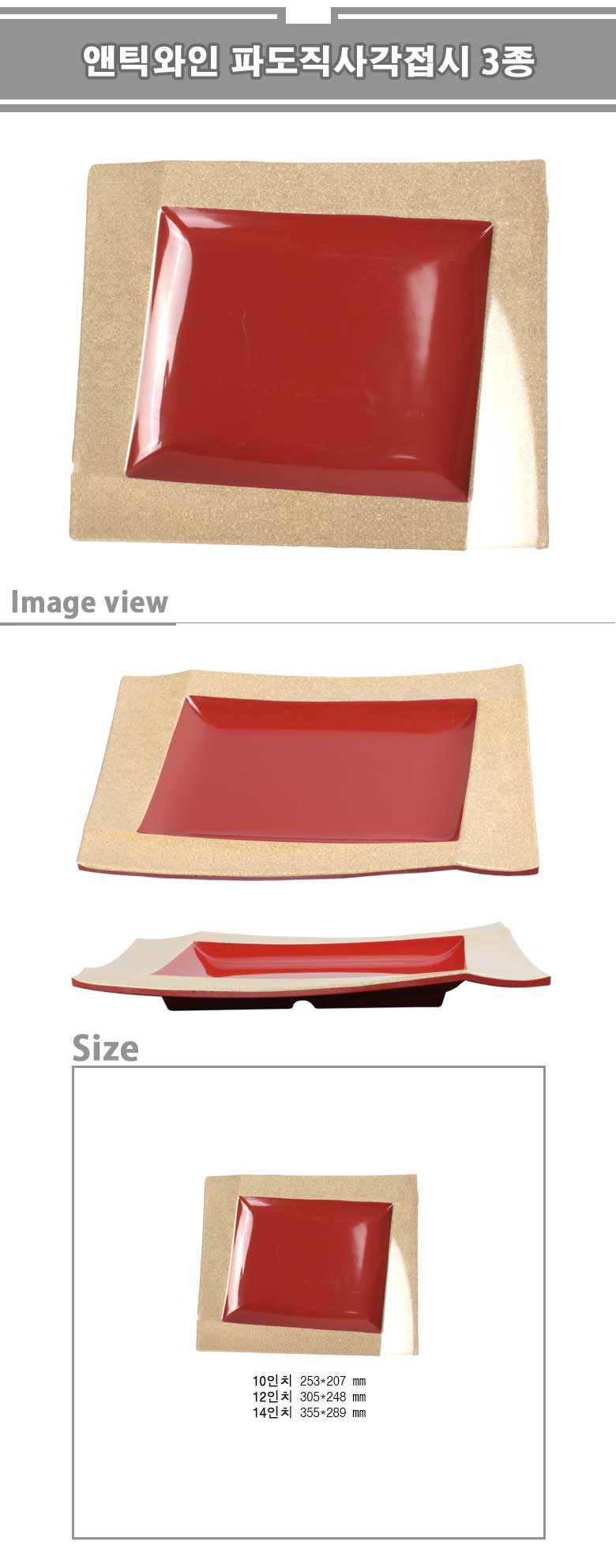 앤틱와인 파도직사각접시