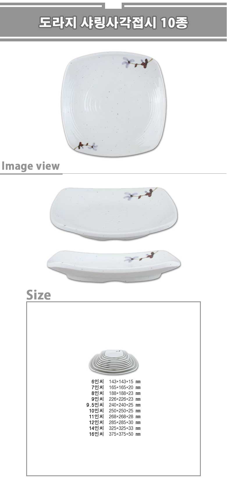 도라지 샤링사각접시